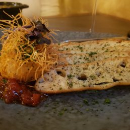 Wow! The restaurant has an eye-catching fountain outside that looks like a creative art piece, and this attention to creativity is reflected in their atmosphere (6 ppl or less, reservations encouraged) and food. The food was amazing! Absolutely stunning roasted carrot chile soup w pepitas. Queso fundido like I've never had before. Perfectly prepared flounder and sweet mashed potatoes. We enjoyed everything. The drop biscuits were yummy and the crème brûlée too (uniquely flavored w lemon/rosemary). The staff was extremely pleasant and helpful! Overall the best food experience we've had here. Go just for how delicious the food is. It's lovely. The grape creek Pinot Grigio was great w the flounder.
